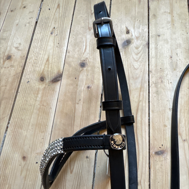 Die Trense Hildingur ist ein elegantes, zweiteiliges Hannoveranisches Reithalfter, das durch sein auffälliges Design mit großen Kristallverzierungen besticht. Dank der zweiteiligen Konstruktion bietet sie mehr Flexibilität, individuelle Druckverteilung und eine optimale Anpassung an die Kopfform des Pferdes – für höchsten Komfort und eine optimale Passform.