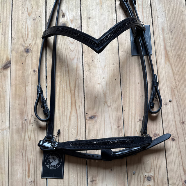 4. Passender Nasenriemen verziert mit schwarzen Kristallen
