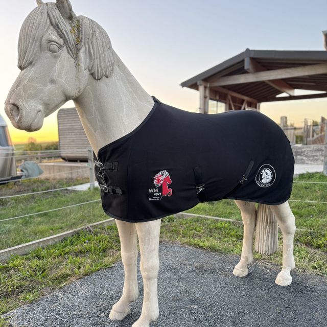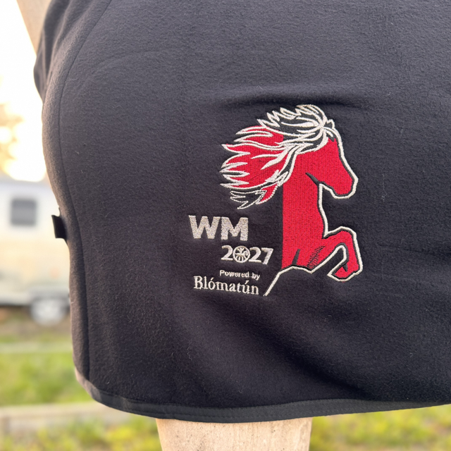 1. Fleecedecke mit gesticktem WM 2027 Logo.