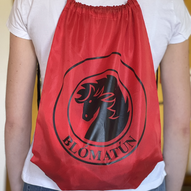 Die Blómatún Bag in rot und Blómatún Logo überzeugt durch Stil und Funktionalität. Das großzügige Hauptfach bietet ausreichend Platz für all deine Essentials. Dank der cleveren Kordelträger lässt sich der leichte Sportbeutel bequem wie ein Rucksack tragen. Ob im Stall, beim Training oder unterwegs – dieser Beutel ist dein perfekter Begleiter.