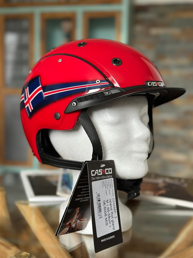 Casco Reithelm CHAMP 3 rot glänzend mit Island Flagge