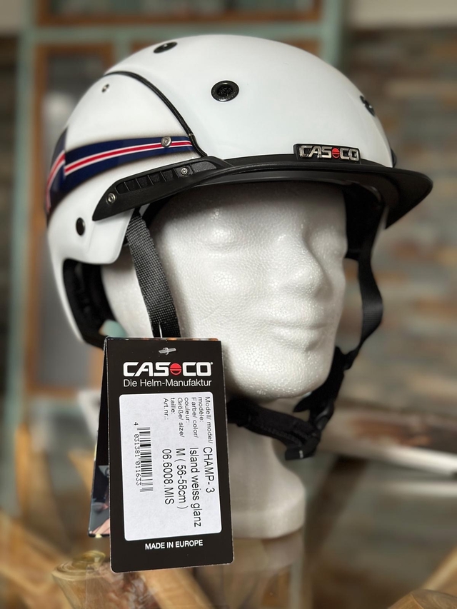 Casco Reithelm CHAMP 3 weiß glänzend mit Island Flagge
