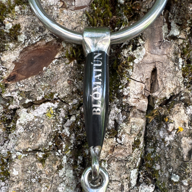 Die Wassertrense Reynir verfügt über ein einfach gebrochenes Mundstück mit losen Ringen und ist aus rostfreiem Stahl gefertigt. Eine hochwertige Sweet-Iron-Beschichtung sorgt dafür, dass das Material bei Kontakt mit Feuchtigkeit leicht oxidiert und eine angenehm süßliche Geschmacksnote entwickelt. Diese regt die Speichelbildung sowie die Kautätigkeit des Pferdes an und fördert so eine entspannte Anlehnung.