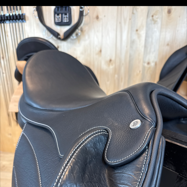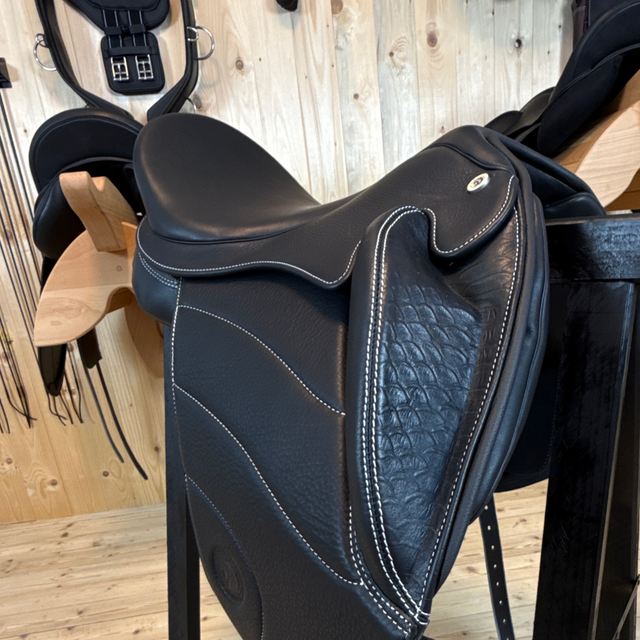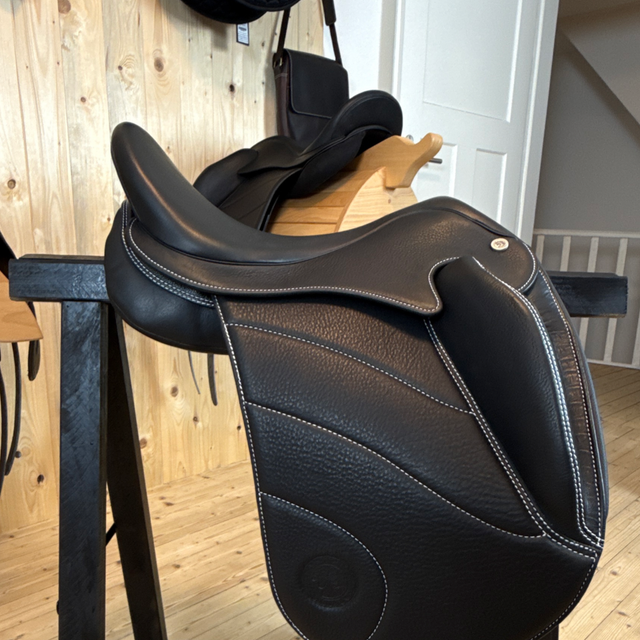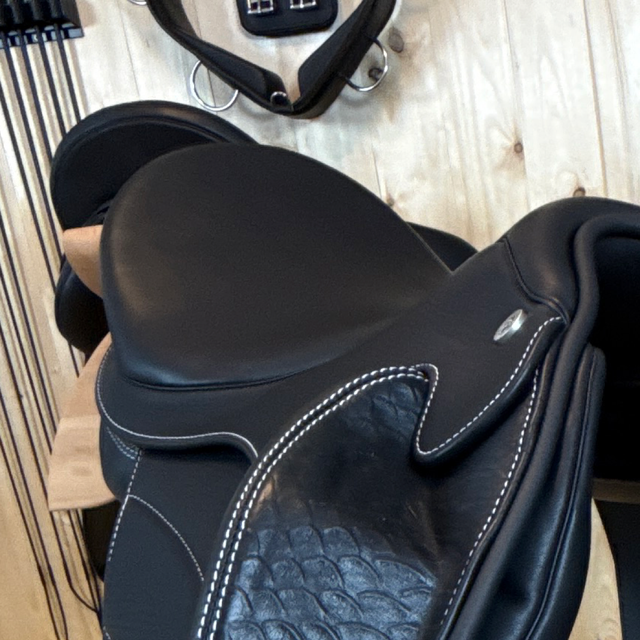 Das Modell Sóldögg Design The White One vereint DEN tiefen Sitz mit stilvoller Farbe. Die weißen Ziernähte setzen elegante Akzente und verleihen dem Sattel eine moderne, individuelle Ausstrahlung – für Reiterinnen und Reiter, die Qualität und Design lieben. Der Sattel überzeugt mit hochwertigen Materialien und exzellenter Verarbeitung. Mit ergonomisch geformten Pauschen, dem tiefen Schwerpunkt und dem ausbalancierten, mittigen Sitz bietet dieses Modell dem Reiter einen besonders nahen Kontakt zum Pferd. Dadurch hat der Reiter die Möglichkeit, das Pferd nach seinen Wünschen zu beeinflussen und hierbei eine Einheit zu seinem Pferd herzustellen sowie gleichzeitig das Untertreten und eine aktive Rückentätigkeit des Pferdes zu fördern. Ausreichend Platz zwischen den Tragflächen gewährleistet dem Pferderücken mehr Bewegungs- und Schulterfreiheit.