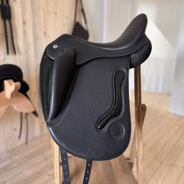 Der Sattel Sóldögg der Marke Blómatún bietet DEN tiefen Sitz. Das Modell Sóldögg „Womanizer“ zeichnet sich durch besonders aufwendige Applikationen und Designelemente auf dem Sattelblatt aus. Die ergonomisch geformten Pauschen, der tiefe Schwerpunkt und der ausbalancierte mittige Sitz, unterstützen den Reiter, in Verbindung mit dem nahen Kontakt zum Pferd. Der enge Kontakt mit dem Pferd erleichtert es dem Reiter, das Pferd nach seinen Wünschen zu beeinflussen und hierbei eine Einheit zwischen Reiter und Pferd herzustellen sowie gleichzeitig das Untertreten und eine aktive Rückentätigkeit des Pferdes zu fördern. Ausreichend Platz zwischen den Tragflächen gewährleistet dem Pferderücken mehr Bewegungs- und Schulterfreiheit. Das italienische Leder und das hochwertige Design geben dem Sattel sein elegantes Finish.