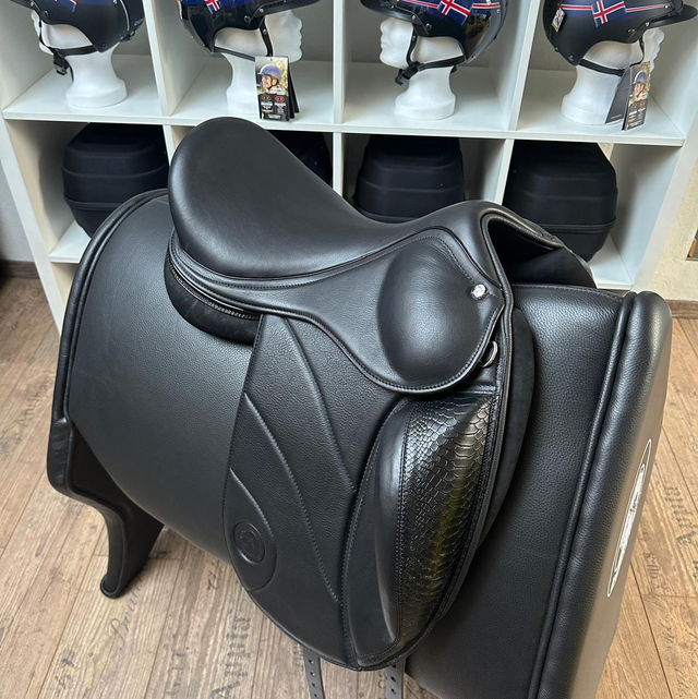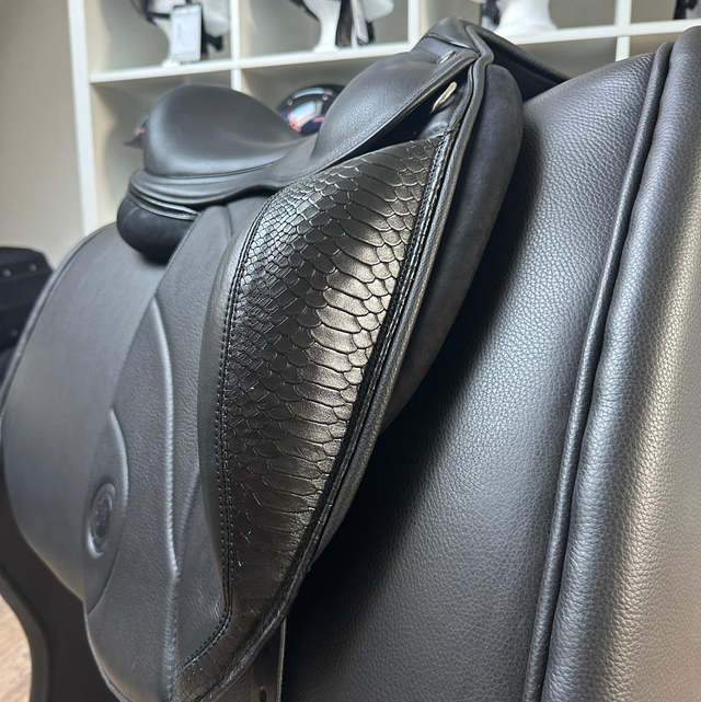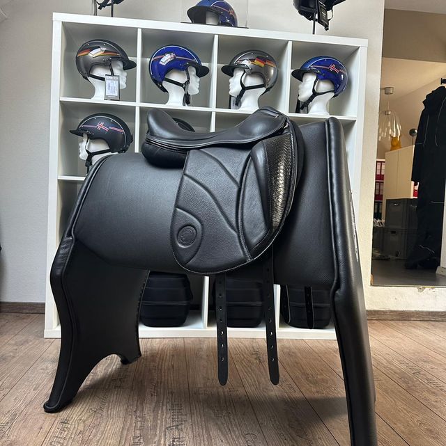 Der Blómatún Sattel Svarta Rós bietet ein höchstes Maß an Qualität und passgenauer Fertigung für Pferd und Reiter. Dieses innovative Modell überzeugt durch seinen tiefen, ausbalancierten Sitz mit mittigem Schwerpunkt, der eine optimale Gewichtsverteilung u. einen besonders engen Kontakt zum Pferd gewährleistet. Die ergonomisch geformten Pauschen im exklusiven Blómatún-Design bieten stabilen Halt u. hohen Reitkomfort. Der flexible C-Sattelbaum sorgt für eine hervorragende Schulterfreiheit u. passt sich ideal an die Anatomie von Pferd u. Reiter an. Durch die V-Gurtung mit integriertem Schutz u. die Strupfen-Fixierung bleibt der Sattel auch bei intensiver Bewegung sicher in Position. Das austauschbare Kopfeisen (Standardgröße 27 C) ermöglicht eine individuelle Anpassung. Abgerundet wird das hochwertige Gesamtbild durch die Verwendung feinsten Kalbsleders für Sitzfläche, Pauschen u. Sattelblätter.