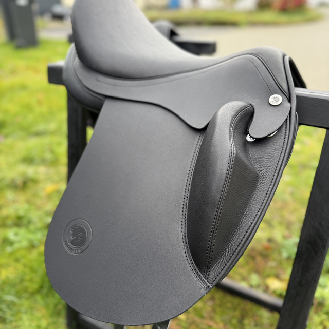 Die ergonomisch geformten Kniepauschen, der tiefe Schwerpunkt sowie der mittig ausbalancierte Sitz sorgen für maximalen Halt bei gleichzeitig engem Kontakt zum Pferd. Dadurch entsteht ein harmonisches Zusammenspiel zwischen Reiter und Pferd – die Hilfen können präziser gegeben werden, während das Pferd aktiv untertritt und den Rücken optimal einsetzen kann.