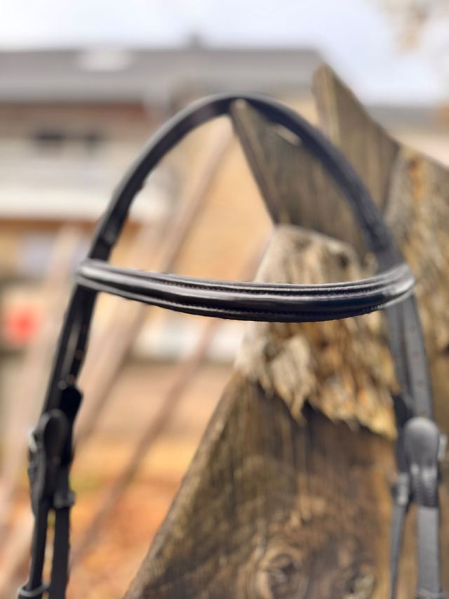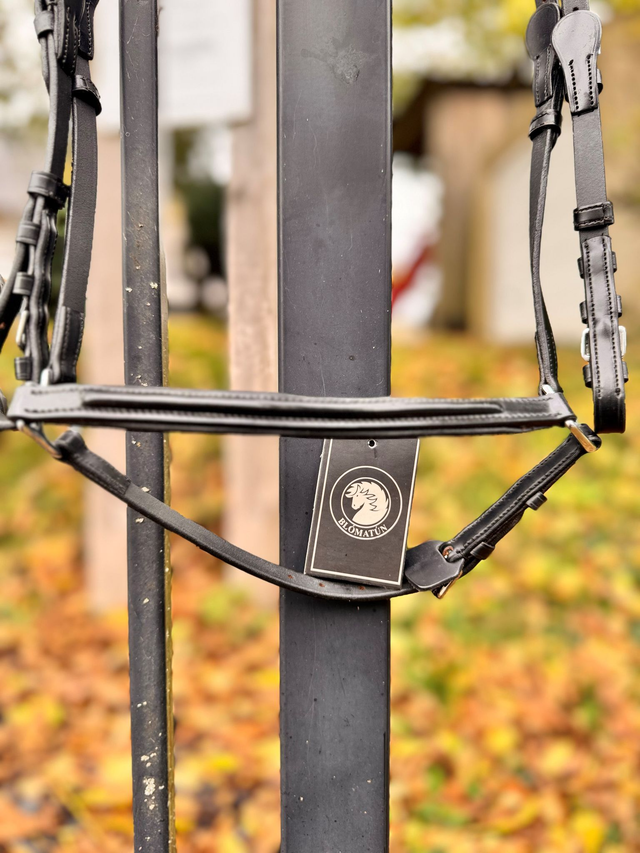 Das weich gepolsterte Nackenstück verteilt den Druck gleichmäßig und unterstützt eine entspannte Anlehnung. Hochwertiges Leder und langlebige Edelstahlbeschläge machen die Trense zu einem zuverlässigen Begleiter im täglichen Training wie auch im Turniereinsatz.